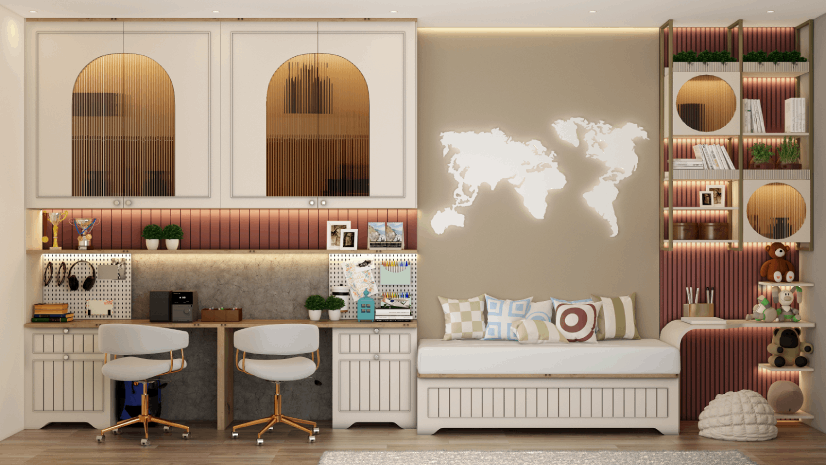 With work from home now a permanent fixture in many Indian households, even small homes need a dedicated workspace. A compact desk, study table with cable management and wall-mounted storage prevents work from spreading into bedrooms and dining tables.