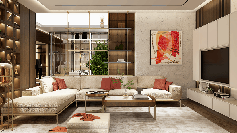 • Colours: Light, uplifting colours, soft yellow, cream, light green, or warm white, are preferred for living room walls.